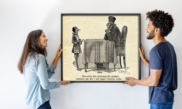 Pinocchio facing the judge. Illu...