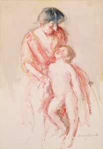 Mary Stevenson Cassatt var en amerikansk målare som tillsammans med Marie Bracquemond och Berthe Morisot var en av impressionismens "grandes dames". Hennes far var aktiemäklare och fastighetsmäklare och hennes mor kom från en framstående bankfamilj. Denna välsituerade bakgrund gjorde det möjligt för Cassatt att få en utmärkt utbildning. Hon sägs ha påverkats särskilt av sin mor, som beskrevs som mycket beläst och utbildad. Under hennes barndom bodde familjen i Europa i fem år. Det var troligen under denna tid som Cassatt fick upp ögonen för måleri och senare bestämde sig för att studera konst för att själv bli professionell målare. Familjen motsatte sig detta av flera skäl: för det första var det olämpligt för kvinnor från rika familjer att utöva ett yrke vid den här tiden. Hennes konservativa föräldrar fruktade att hon skulle ta till sig feministiska och okonventionella ideologier genom sina studier. Cassatt stödde faktiskt senare starkt lika rättigheter och kvinnors rösträtt.
