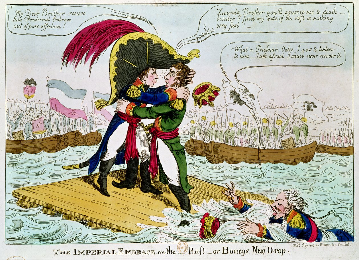 The Imperial Embrace eller Boneys New Drop, publicerad av Walker, London, juli 1807(The Imperial Embrace or Boneys New Drop, published by Walker, London, July 1807 )English School |