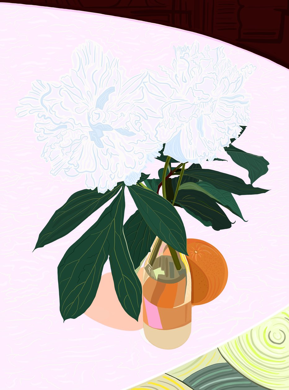 Pion och grapefrukt, ca 2020-24 (digital konst)(Peony and Grapefruit, c.2020-24 (digital art))Evan Sklar |
