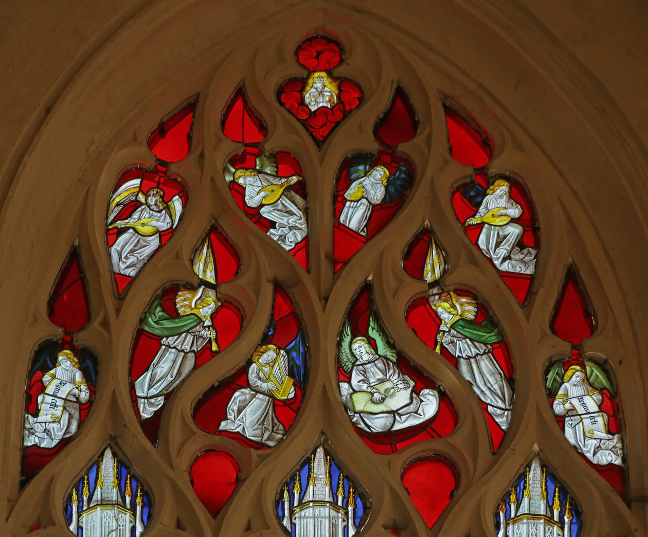 Dirisha linaloonyesha Wanamuziki wa Malaika, swed(Window depicting Angel Musicians, )French School |