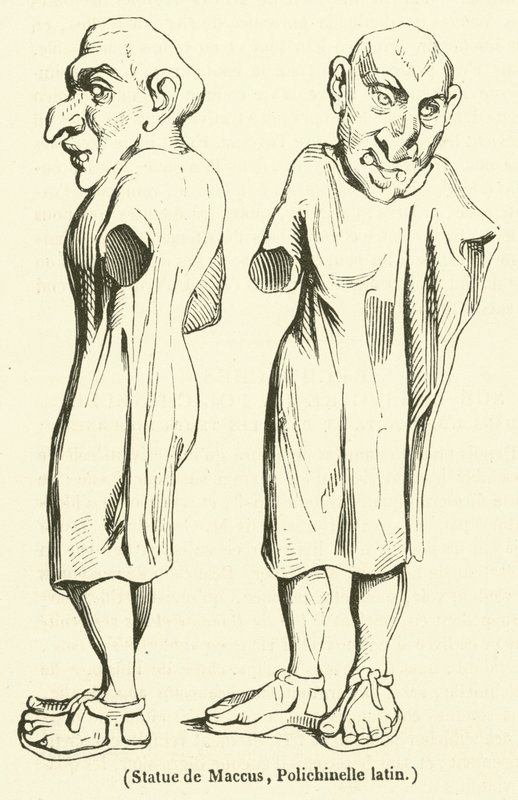 Staty av Maccus, Polichinelle latin (gravyr)(Statue de Maccus, Polichinelle latin (engraving))French School |
