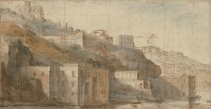 (A fortified village on an isthmus (black chalk, pen and brown ink, watercolour))Gaspar van (1653-1736) Wittel |