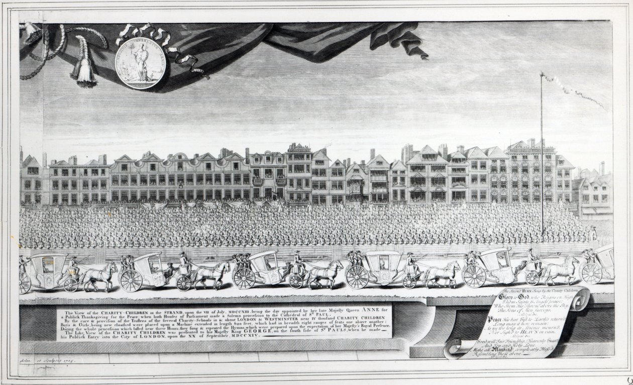 View of the Charity Children in the Strand, 7 juli 1713, tryck gjord 1715(View of the Charity Children in the Strand, 7th July 1713, print made in 1715 )George Vertue |