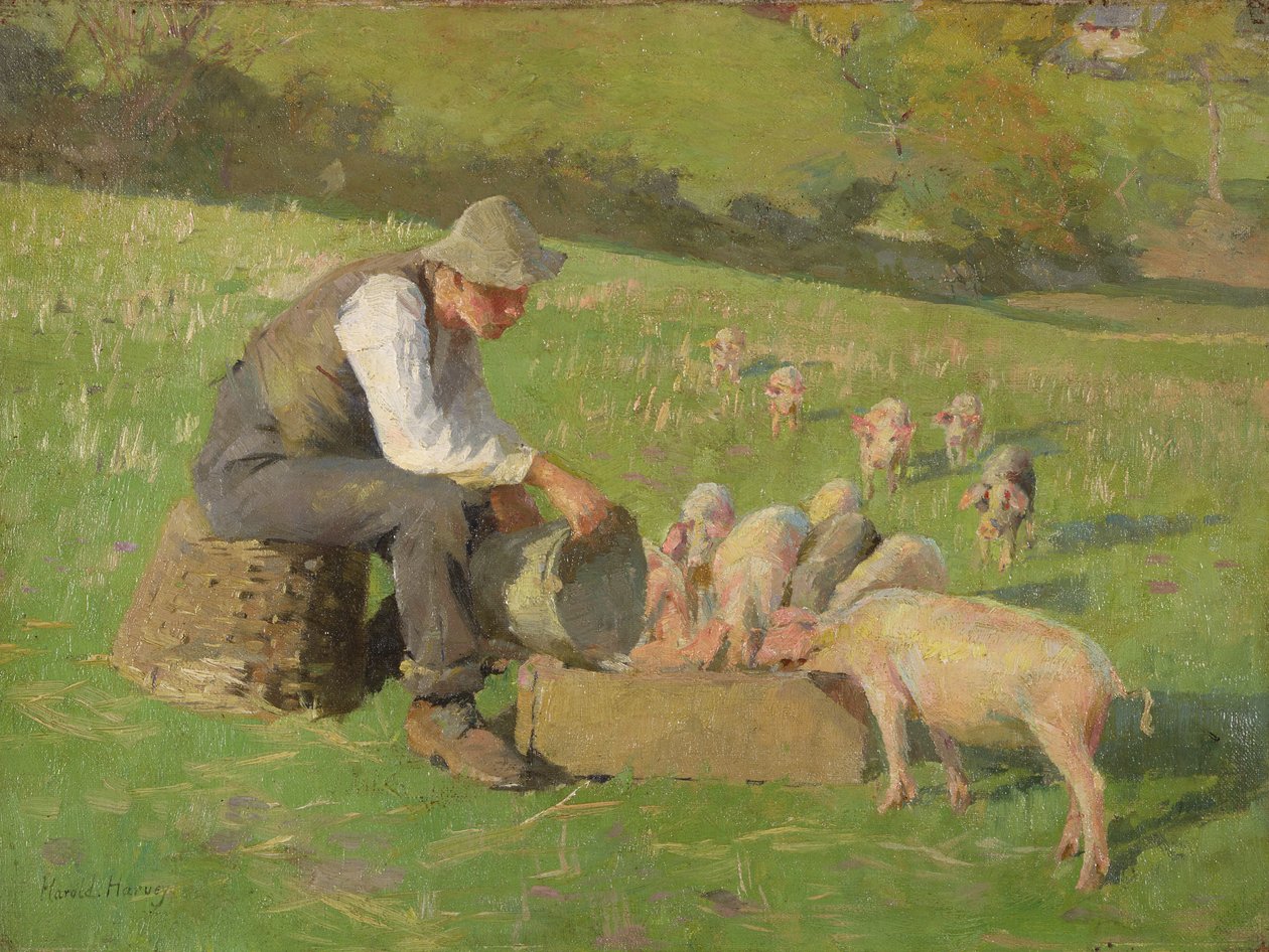 Matningstid (olja på duk)(Feeding Time (oil on canvas))Harold Harvey |