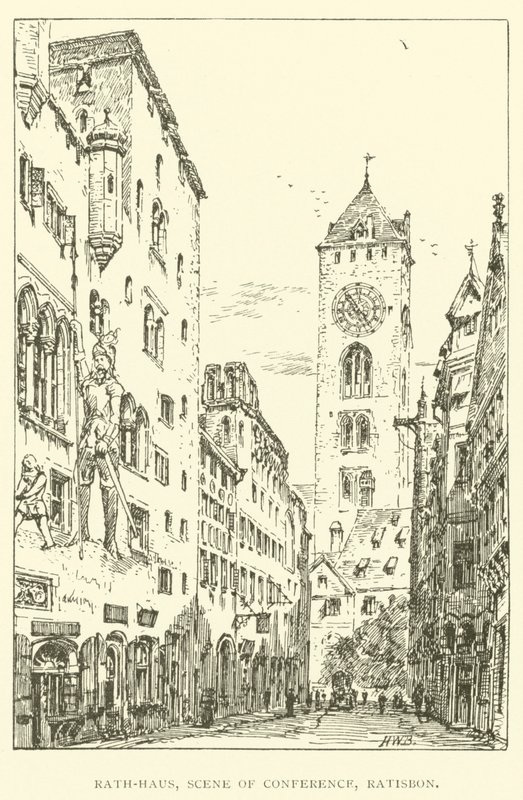 Rath-Haus, konferensscen, Ratisbon (gravyr)(Rath-Haus, scene of conference, Ratisbon (engraving))Henry William Brewer |