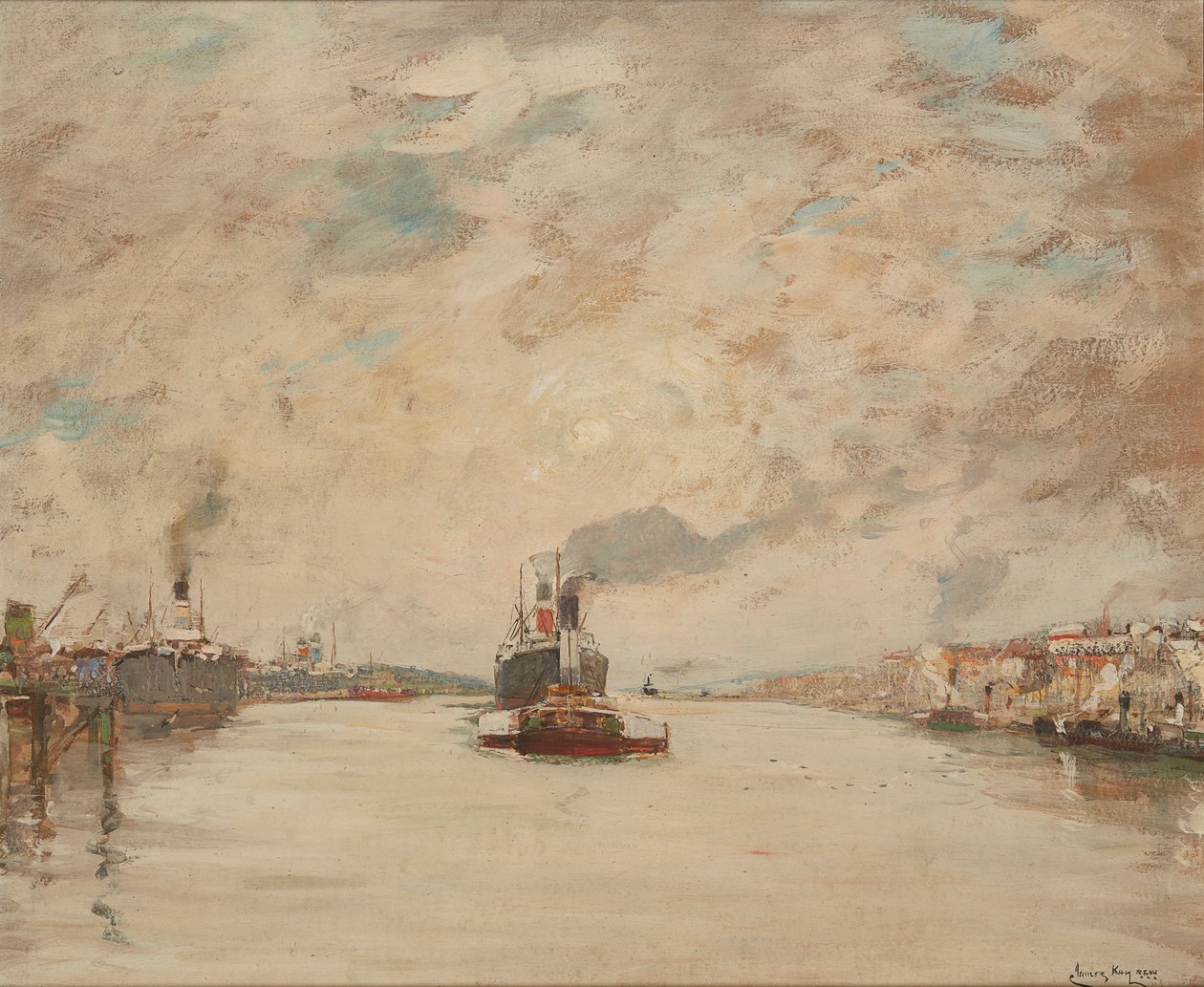 Westering Sun, River Clyde (olja ombord)(Westering Sun, River Clyde (oil on board))James Kay |