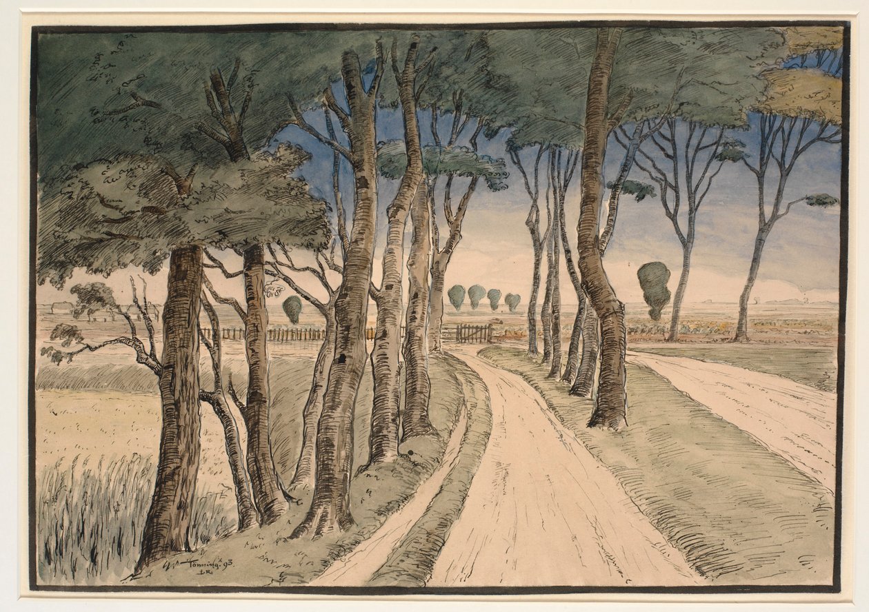 Marklandskab. I forgrunden en vej med trer(Landscape. In the Foreground a Road with Trees)Johan Rohde |
