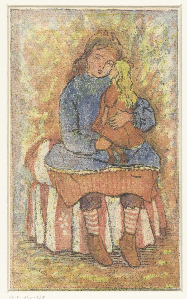 Flicka med docka(Meisje met pop)Lucien Pissarro(print maker) |