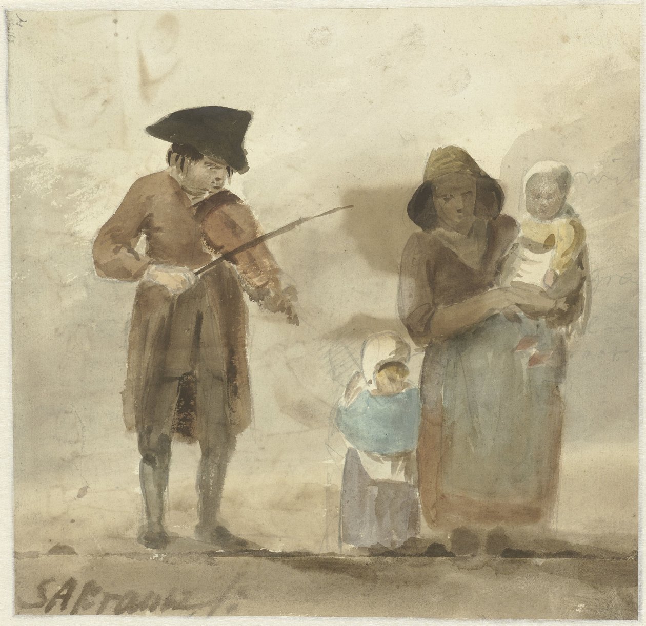 Gatumusiker med fru och barn(Straatmuzikant met vrouw en kinderen)Simon Andreas Krausz(draughtsman) |