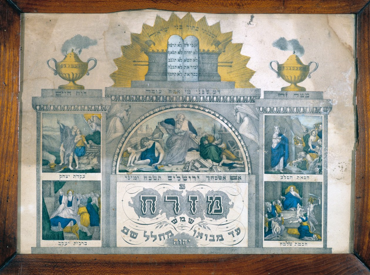 En Misrach, som indikerar Jerusalems riktning i judiska hem, som representerar Menoran(A Misrach, indicating the direction of Jerusalem in Jewish Homes, representing the Menorah)Unbekannt Unbekannt |