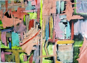 År 1930 skapades en av de unika kompositionerna av den exceptionella konstnären Wassily Kandinsky, vars abstrakta målningar kan hittas på många platser idag. Målaren, som föddes och växte upp i Ryssland, bodde också länge i Tyskland och är bland annat känd som medgrundare av Blaue Reiter. Han experimenterade och improviserade med sitt speciella färg- och formspråk och skapade sina målarkompositioner, som han jämförde med musikaliska kompositioner. Hans mål var att uttrycka stämningar och känslor i sitt måleri. Den här kompositionen från 1930, skapad med akvarell och bläck, består av sammanlänkade trianglar och kvadrater som lyser i klara färger. Färgerna verkar noggrant samordnade och har varierande nyanser inom formerna. På vissa ställen smälter färgerna mjukt in i varandra, vilket ger målningen en mycket speciell charm.