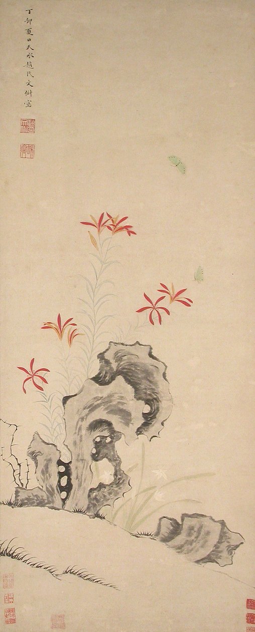 Rock, Tiger Lily and Orchid, daterad 1627.(Rock, Tiger Lily and Orchid, dated 1627. )Zhao Wenchu |